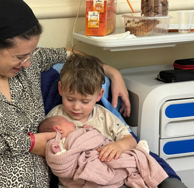 On Thursday morning, Tzvi went to the morning service in synagogue to give her her name, Liel Leah. At this hospital, and most in Israel, they will not discharge you after a C section until you've been in for three nights, so after being discharged, later on Thursday, they came to us so that we could all spend Shabbat together. They were excited to go home on Saturday night and are now settling into their new life as a family of four.