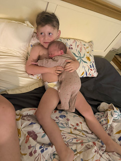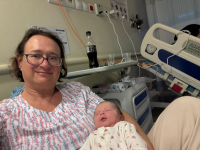 Poor Malcolm was in England but celebrated with family and friends there and it was nice for Mum to have him with her when the news came. Â Gila had planned the day of the surgery to the last detail, especially the arrangements for Eliya. Of course, that all went out of the window. I stayed over night with the girls so that Tzvi could wake Eliya up with the news in the morning. He was confused but excited and after nursery Tzvi brought him to meet his new little sister. At four years old he was fascinated by how small she was, especially her little fingers, and he loves stroking her soft hair and cuddling her. On Malcolm's arrival back in Israel on Wednesday evening, he came straight to the hospital from the airport.