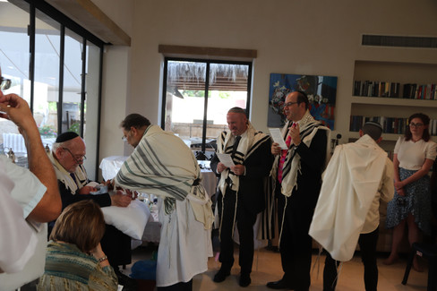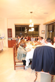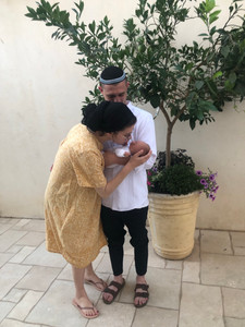 The day after Rosh Hashanah, Thursday, the baby was eight days old, when Jewish boys undergo their circumcision, a Brit Mila, an important ceremony in the Jewish lifecycle, a symbol of the covenant between Abraham and G-d. Saba Raba (Great Grandfather) Rabbi Michael Kanterovitz held the baby during the circumcision. Saba Chaim gave the blessing afterwards and read out the name, and Saba Malcolm held the baby for the naming. Traditionally a baby boy's name is not revealed until the blessings said after his circumcision. Baby K was named Elia Yosef - Elia meaning 'In God I trust' and Yosef after Malcolm's late father Joe (Joseph/Yosef) so it was very emotional for Malcolm to be holding Elia when he was named. Whilst it was strange not having family and friends from England with us, we were supported by, and celebrated with, the wider Kanterovitz family, our lovely friends from Netanya, and Gila and Tzvi's fabulous friends who came from all over the country, with several of Tzvi's comrades from his former army unit joining us.