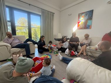 Mum was fantastic. We know from our own experience of being caught out of Israel in the last Iran war, how difficult it is not knowing when you will get home, even if you are perfectly happy where you are. Add to that the disruption of sirens going off day and night and being restricted to staying at home but she was determined to make the best of the situation As well as maximising her time sitting in the sun, she enjoyed building her relationships with Eliya and Liel. Initially rescue flights were only for those Israelis caught abroad but after a week they started flights to return non Israelis to their home country. Mum was offered a flight leaving at 7am after 8 days. Only 75 people allowed per flight and we were only allowed to arrive at the airport two hours before hand. I was able to take her in and stay with her until the assistance we had booked came to collect her. Fortunately, there were no sirens whilst she was in the airport or on the plane and after a great journey she was at her book club in the afternoon and planning her next trip to Israel, in June, later that evening!