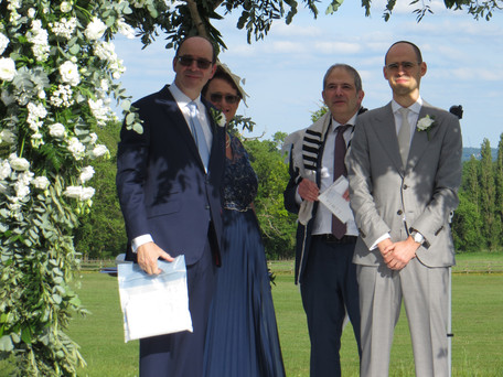 Shabbat and the aufruf provided further magic. Ben's oldest and closest friend Jacob Freedman, who he was at nursery, primary and secondary school with (same class all the way through) and then Uni, made Aliyah several years ago and was due to marry his Israeli fiancée, Hen, last summer. Unfortunately, the wedding was postponed twice due to covid. With the new date only three weeks after Ben’s wedding and Jacob and Hen coming over to the UK for the wedding it made sense for them to have a joint aufruf in Borehamwood Shul where they had grown up. It was very special being surrounded by our family and friends, sharing the occasion with the Freedman family and watching both boys and their fathers - and even my father - being called up to the reading of the Torah. Shul was followed by lunch at home for our family and Tali’s family and then tea in the Freedman’s garden. No photos because it was Shabbat but the memories of the day are imprinted on our minds.